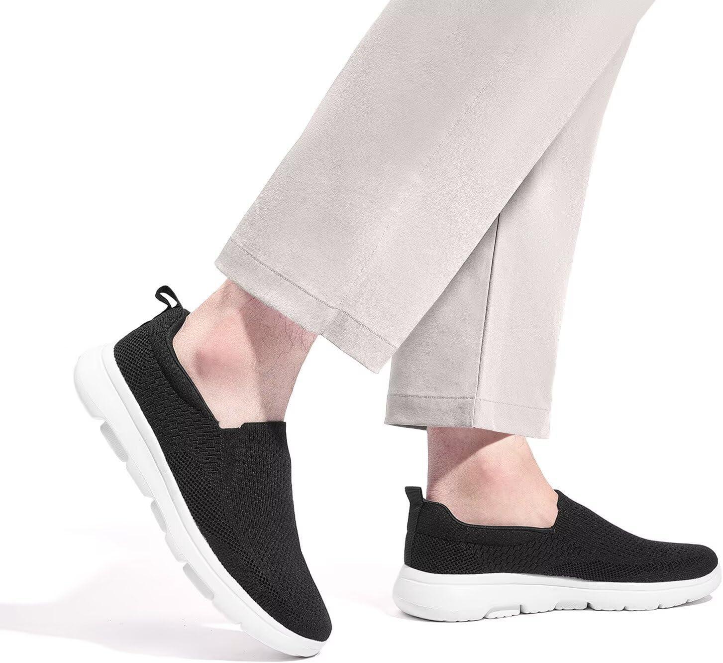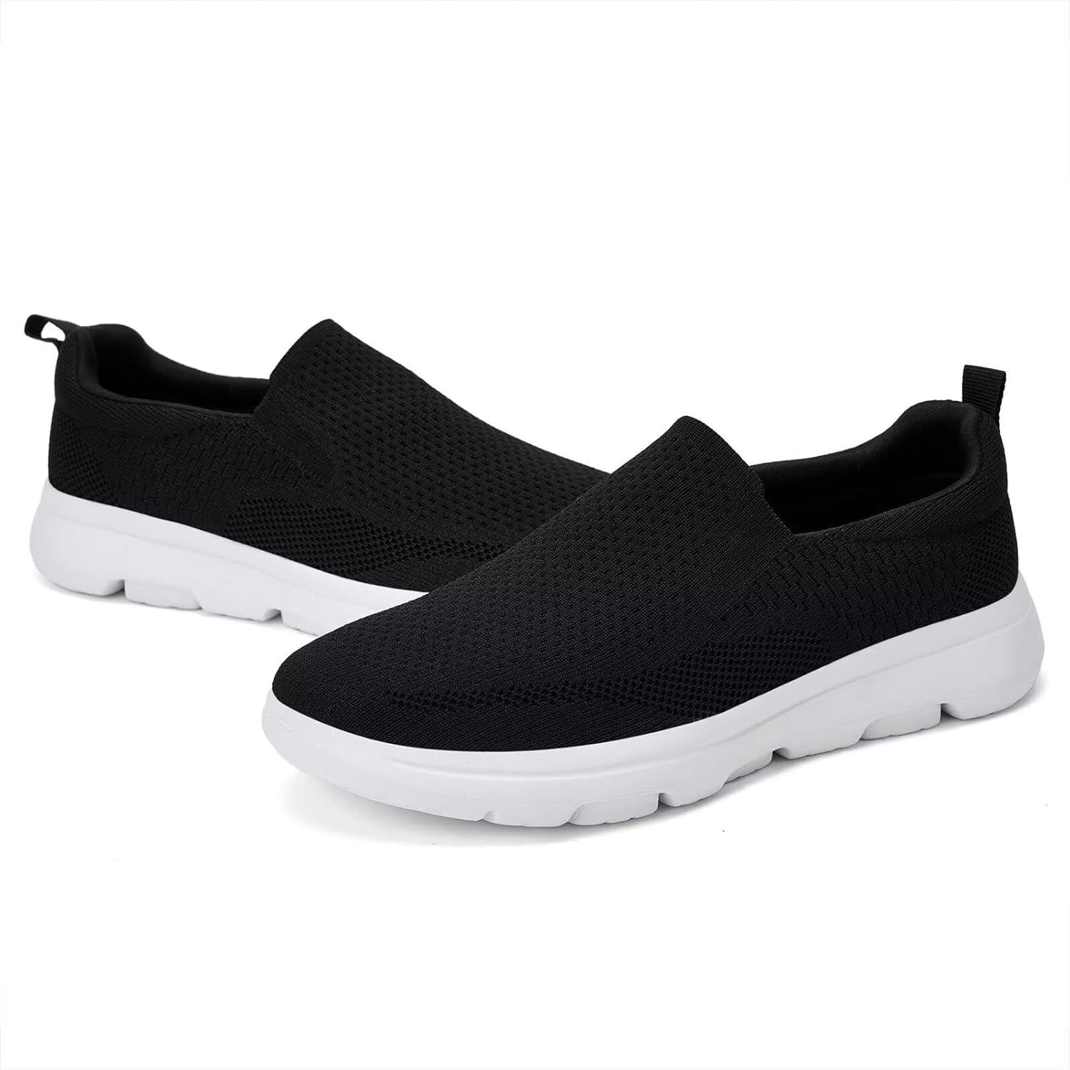 TIOSEBON Men’s Mesh Slip On Walking Shoes Loafers-Work Drving Tennis Shoes(B/Black)